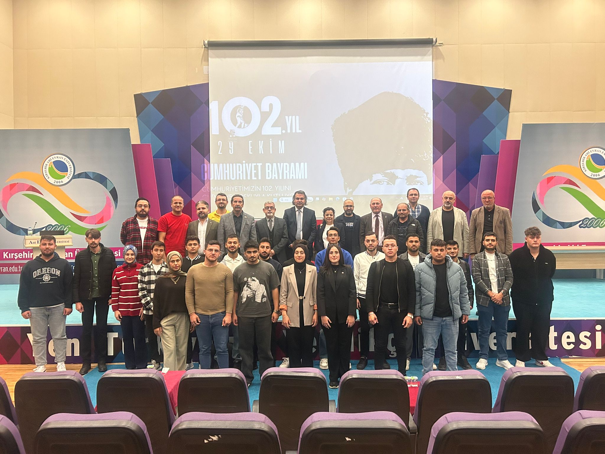 Cumhuriyetimizin 102. yılını büyük bir gurur ve coşkuyla kutladık. Doç. Dr. Mahmut Bolat hocamızın moderatörlüğünde gerçekleşen panelde, Prof. Dr. Yaşar Özüçetin ve Doç. Dr. Ali Ulvi Özdemir hocalarımız değerli konuşmalarını gerçekleştirdiler.