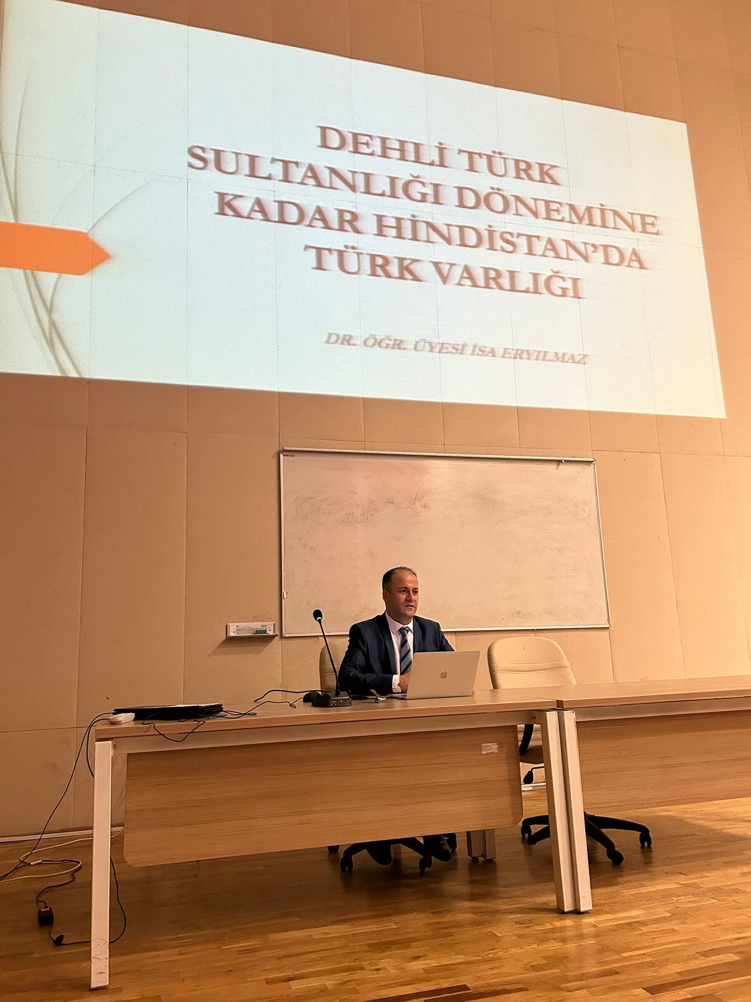 Bölümümüz hocalarından Dr. Öğr. Üyesi İsa Eryılmaz, “Dehli Türk Sultanlığı Dönemine Kadar Hindistan’da Türk Varlığı” başlıklı sunumunda, Hindistan’daki Türk varlığının tarihsel arka planını siyasal, kültürel ve idari boyutlarıyla ele aldı. Sunumda, Orta Asya’dan Hindistan’a uzanan süreçte Türklerin bölgedeki varlığı, teşkilatlanma yapıları ve tarihsel gelişim çizgileri üzerinde duruldu.